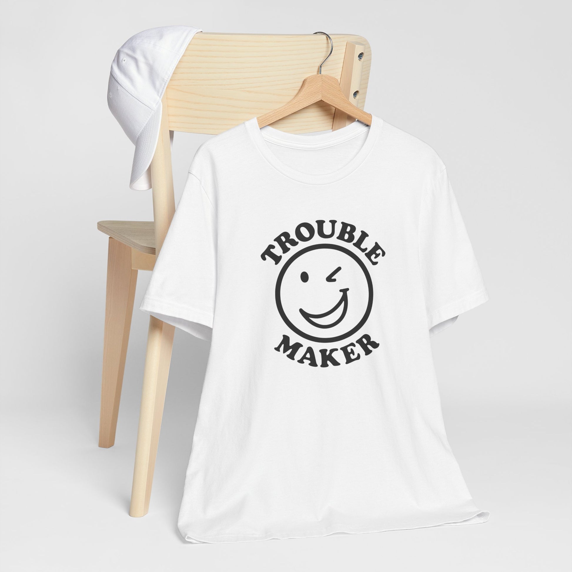 This Flirty Troublemaker Short Sleeve Tee Shirt fits like a well-loved favorite. The soft cotton, polyester blend, makes a lightweight fabric that is easy to layer, breathable, and perfect for active and leisure wear, making you fall in love with it over and over again.