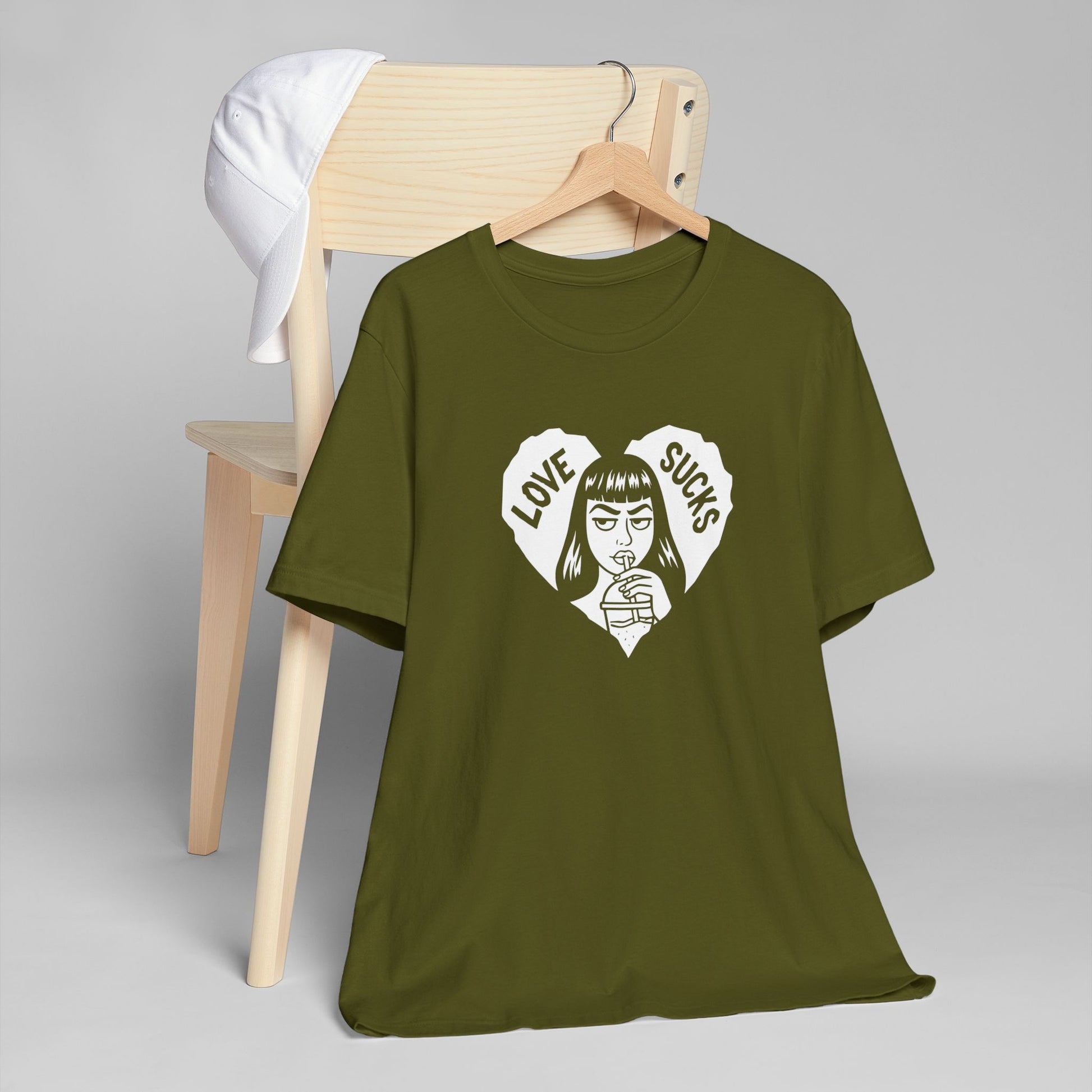 Love Sucks Graphic Tee — Goth Heart Girl Anti-Valentine Short Sleeve T‑Shirt