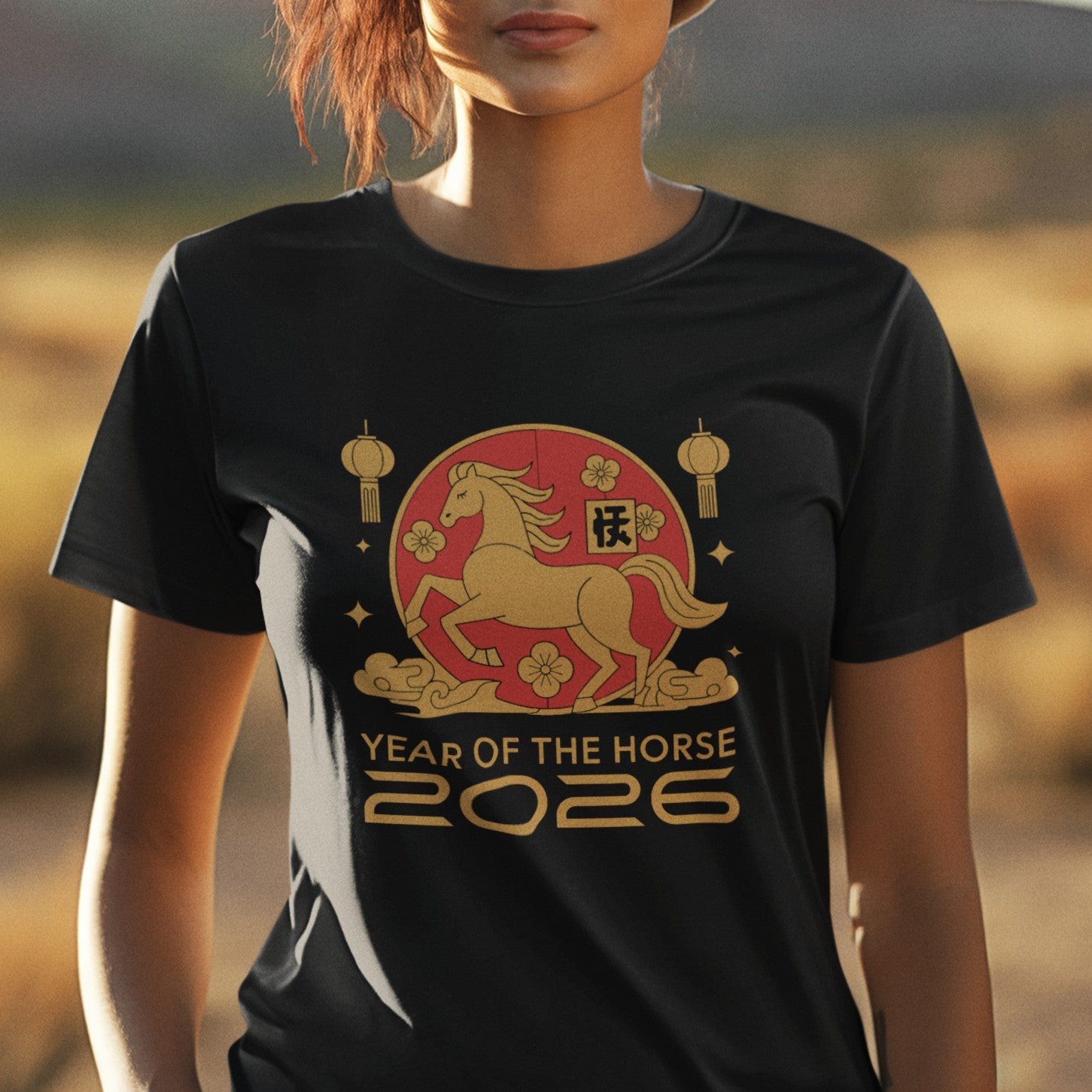 This Year Of The Horse 2026 Short Sleeve Tee Shirt fits like a well-loved favorite. The soft cotton, polyester blend, makes a lightweight fabric that is easy to layer, breathable, and perfect for active and leisure wear, making you fall in love with it over and over again.